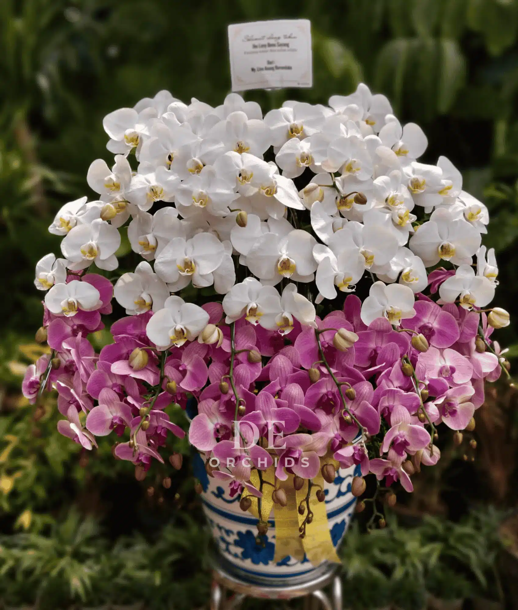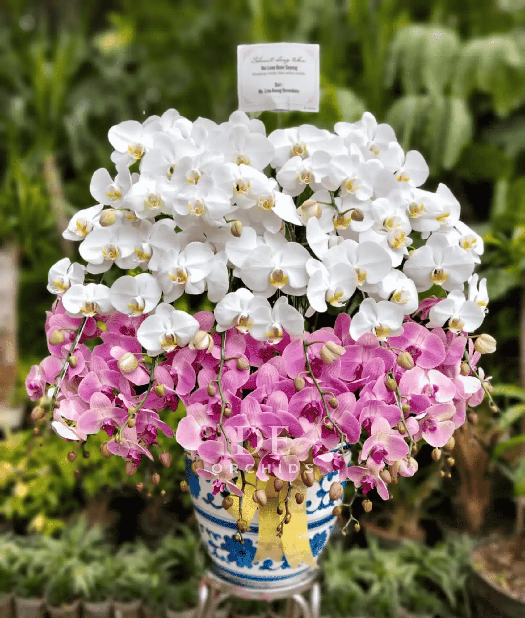 Hadirkan keindahan dan kemewahan dalam setiap momen spesial dengan Anggrek Bulan Kombinasi Putih & Pink Elegan. Rangkaian eksklusif ini memadukan pesona anggrek bulan putih yang melambangkan ketulusan dan kemurnian, dengan anggrek bulan pink yang identik dengan kasih sayang dan keanggunan.