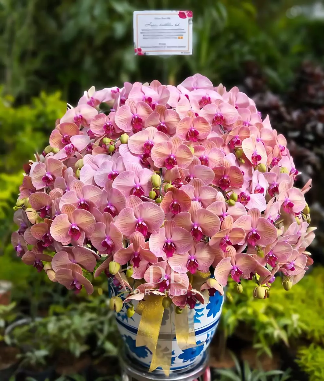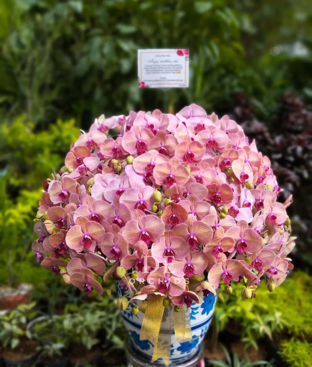 Hadirkan ketenangan dan keanggunan dalam satu tampilan mewah dengan Anggrek Bulan Peach Serenity. Dengan 30 pohon anggrek premium yang disusun harmonis dalam satu pot besar, bunga ini menampilkan nuansa peach-pink yang lembut dan menenangkan—seperti bisikan damai di tengah hiruk pikuk dunia.